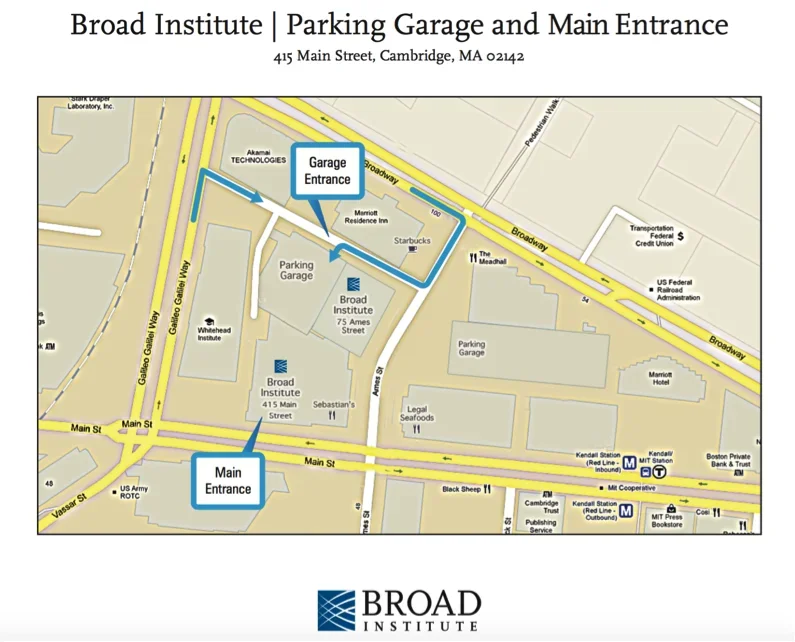 The symposium will take place in multiple rooms on the first and second floors of the Broad Institute, located at 415 Main St., Cambridge, MA. 02142.